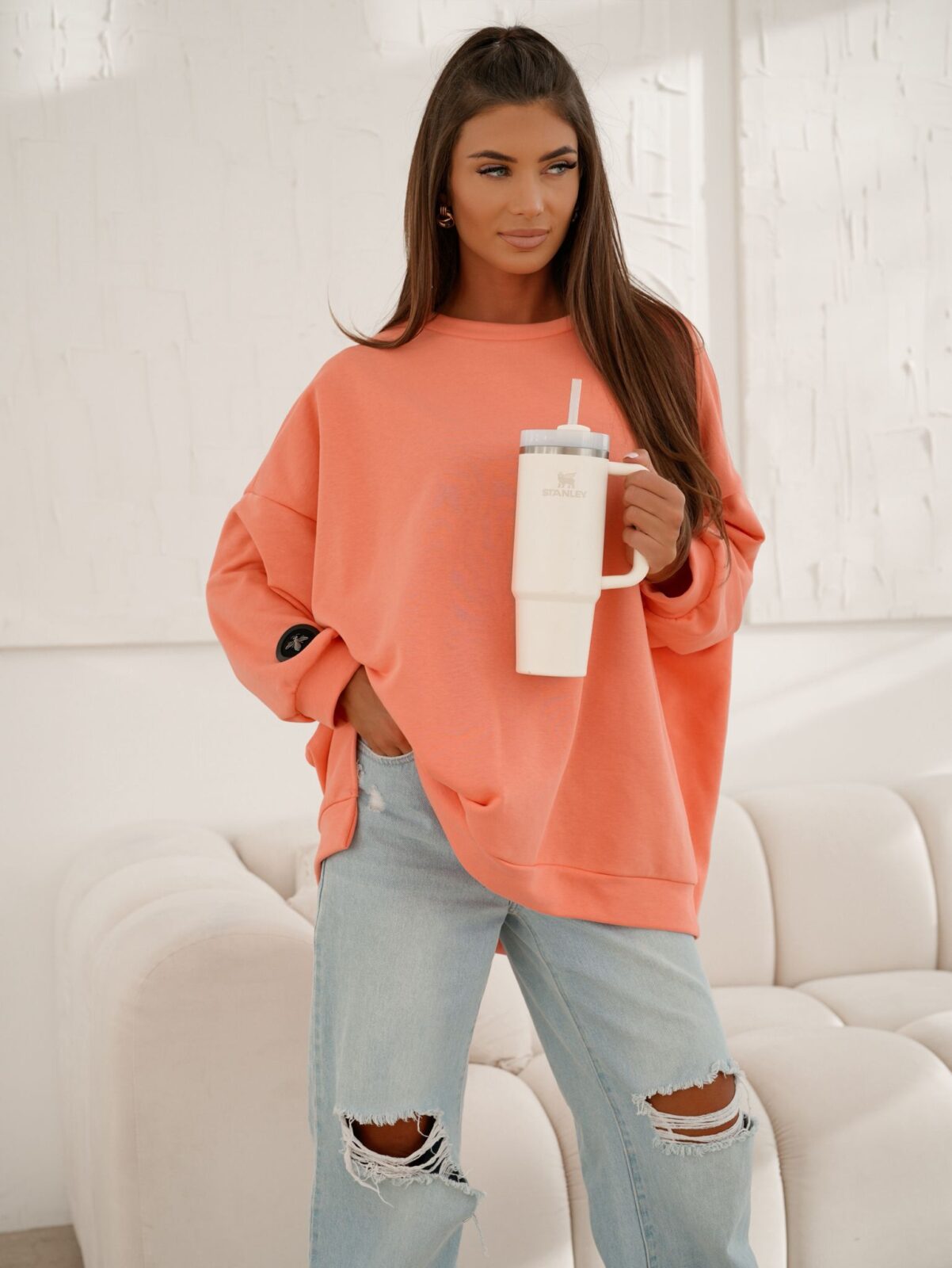 Bluza oversize wykonana z miękkiej, otulającej dzianiny. Minimalistyczna forma i luźny kroj – idealna na co dzień, ale z modowym charakterem.