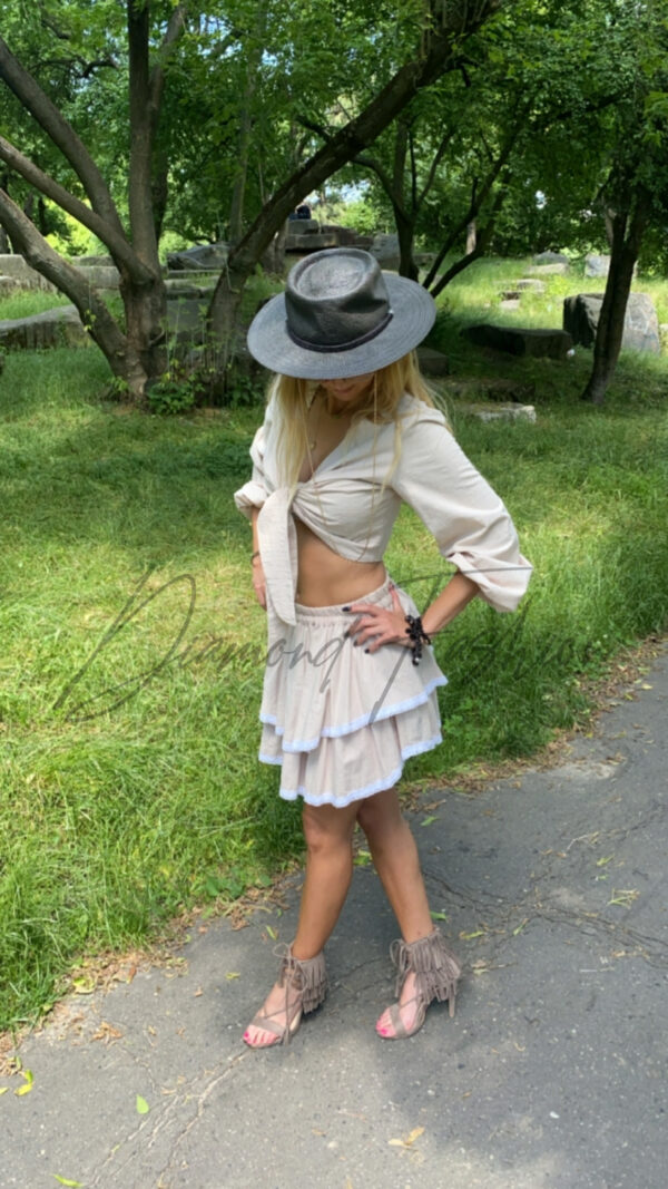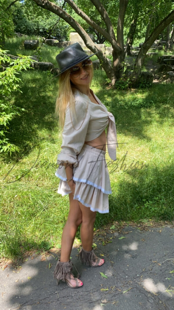 Komplet bluzka + spódniczka LaLu, przepiękny 2 częściowy komplet z którego stworzysz osobne stylizacje. Modny fason oraz wiązana bluzka z pewnością skradnie Wasze serce. Uniwersalny model który, posiada gumkę w spódnicy oraz wiązaną bluzkę. Polski producent i bardzo dobra jakość materiału. Koniecznie musisz go mieć !