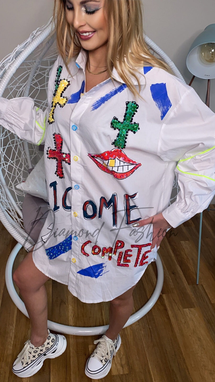 Unikatowa koszula Abbandono o luźnym kroju. Koszula Oversize, jest to idealna baza do wielu stylizacji. Rewelacyjne połączenie ze spodniami bądź szortami dopełni niepowtarzalny look każdej stylizacji. Niesamowicie przyjemny materiał w dotyku, dzięki czemu, noszenie jej, to sama przyjemność.