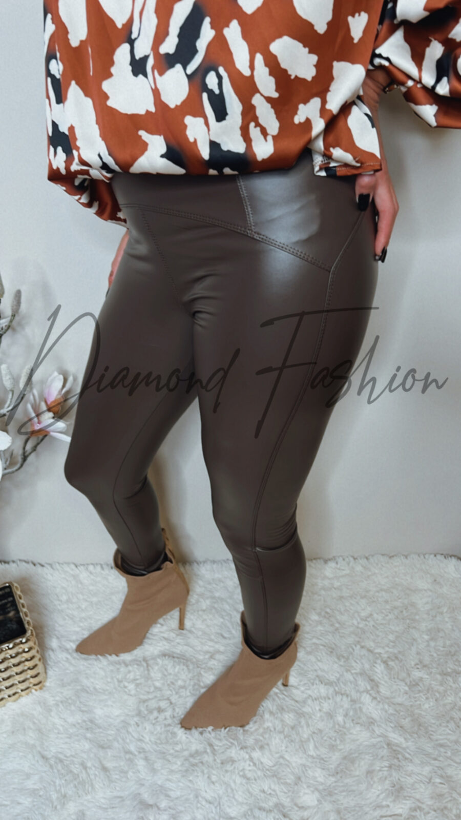 Spodnie leginsy z eko-skóry chocolate