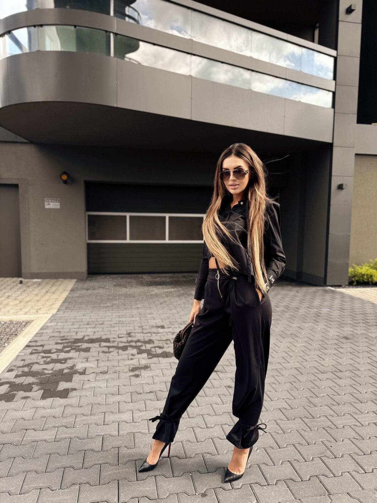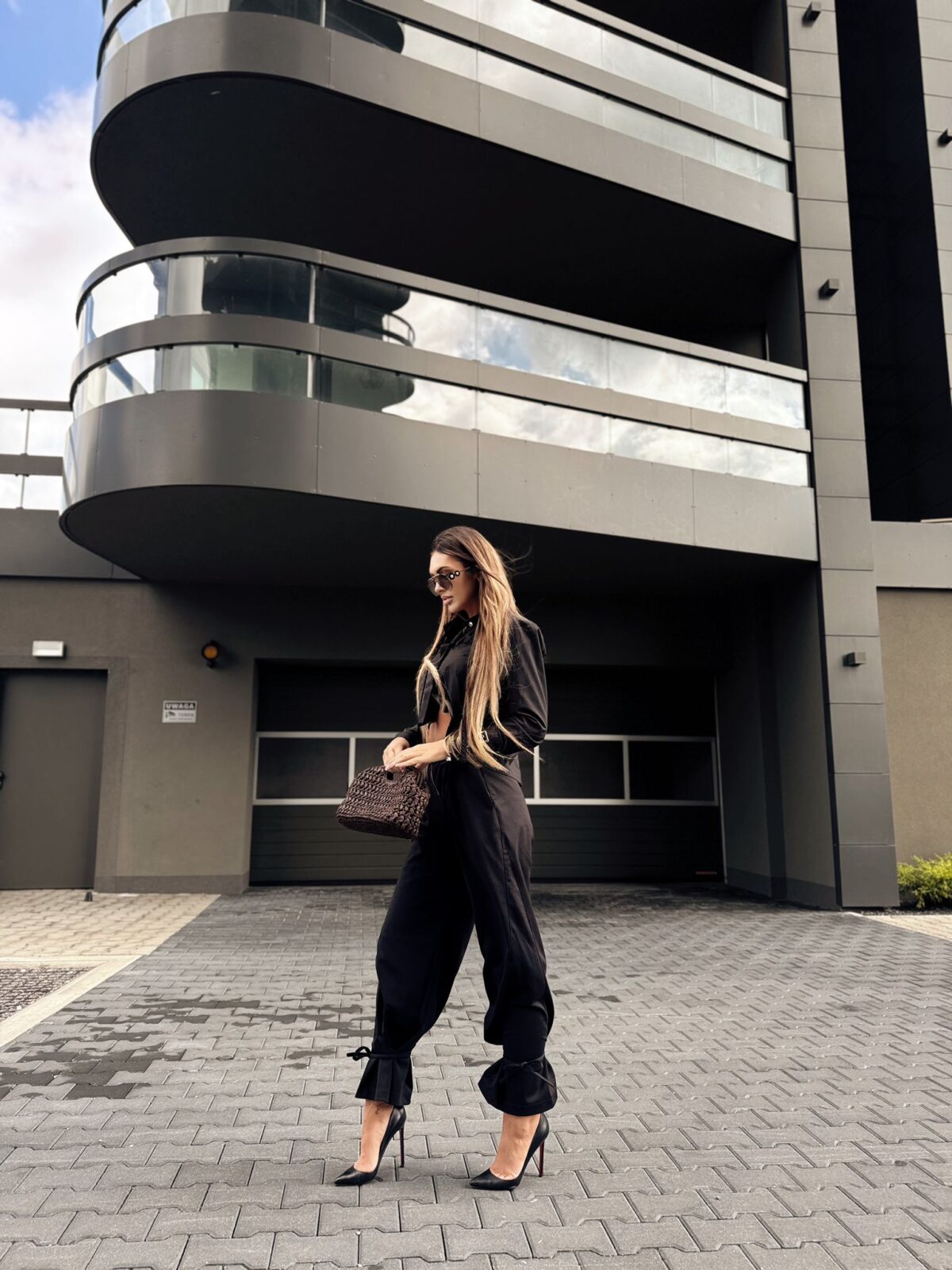 spodnie louise z wiązaniem na dole czarne